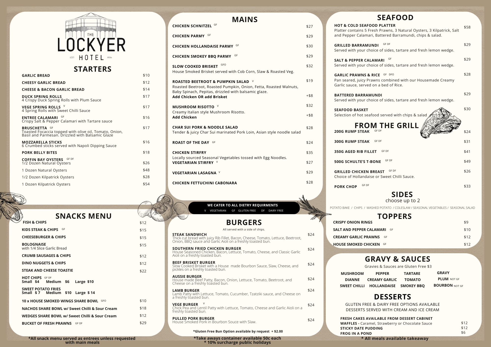 At Lockyer Hotel, we take pride in serving high-quality, mouthwatering dishes crafted with the freshest ingredients. From pub classics to gourmet delights, our menu caters to all tastes. Explore our offerings and enjoy a meal to remember!